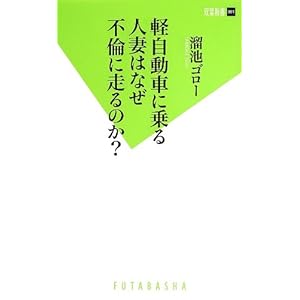 軽自動車に乗る人妻はなぜ不倫に走るのか? 電子書籍 ~ カリスマ美熟女AV監督・溜池ゴロー氏の著書。 今の人妻ブームや不倫に関しての社会的背景などについて、氏の経験値から見解を述べている。 軽自動車やネットの普及を不倫のインフラ整備と位置づけ、人妻が不倫しやすい