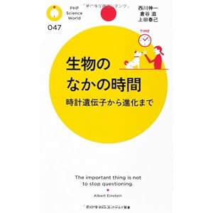 『生物のなかの時間』 HONZ ~ 生物のなかの時間 PHPサイエンス・ワールド新書 作者西川 伸一 出版社PHP研究所 発売日20110917 いくつになっても心は中2だ。生きてるってどういうこと?時間ってなに?僕はだれ?君はどこ?クマムシってクマ?それとも、ムシ