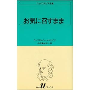 お気に召すまま Riche Amateur ~ ウィリアム・シェイクスピア小田島雄志訳『シェイクスピア全集21 お気に召すまま』白水uブックス、1983年。 ちなみにその友人は演劇関係の道を志す女性で、セリフやその調子を学ぶためにシェイクスピアを読みたいと言っていたの