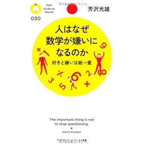 『人はなぜ数学が嫌いになるのか−好きと嫌いは紙一重』 芳沢 ~ 古今東西 硬軟聖俗 なんでもござれ! 今日心に残ったモノ・コト・ヒトを紹介します 『人はなぜ数学が嫌いになるのか−好きと嫌いは紙一重』 芳沢光雄 (PHPサイエンス・ワールド新書)
