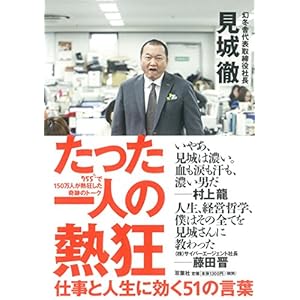 『たった一人の熱狂仕事と人生に効く51の言葉 ブクログ ~ たった一人の熱狂仕事と人生に効く51の言葉 2015318 著:見城 徹 著者は1975年角川書店に入社。400万部を超えた森村誠一の「人間の証明」や5本の直木賞作品をはじめ数々のヒット作を生み出す。93年に角川書店を退社
