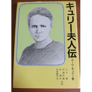 マリ・キュリー Wikipedia ~ エーヴ・キュリー 『キュリー夫人伝』 河野万里子訳、白水社、 2006年。ISBN 4560026130。 Eve Curie 2001年 Madame Curie A Biography Da Capo Press ISBN 0306810387 本書は次女エーヴが、マリが亡くなった3年後の