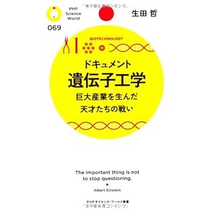 ドキュメント遺伝子工学 巨大産業を生んだ天才たちの戦い ~ ドキュメント遺伝子工学 巨大産業を生んだ天才たちの戦い 生田哲著 (PHPサイエンス・ワールド新書 069) PHP研究所 20135 タイトル読み ドキュメント イデンシ コウガク キョダイ サンギョウ オ ウンダ テンサイ タチ ノ タタカイ