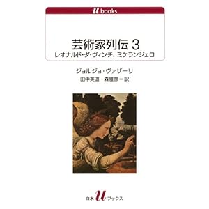 芸術家列伝3 レオナルド・ダ・ヴィンチ、ミケランジェロ 白水U ~ 原典では、およそ160人程の芸術家が紹介されているが、日本語訳では、画家に絞り、17人のパートのみ翻訳されている。第3巻では、レオナルド・ダ・ヴィンチ、ミケランジェロが紹介されている。しかし、そのほとんどは