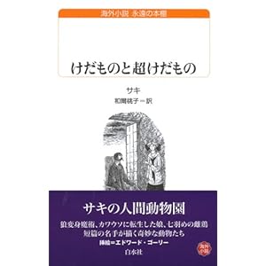 『けだものと超けだもの』 サキ白水Uブックス ~ 『クローヴィス物語』に続き、サキが生前に出版した代表的な短編集である『けだものと超けだもの』の全訳が本書である。いろいろな種類の諧謔的ジョークやブラックユーモアに満ちたいかにもサキらしい作品集で、これを読んで